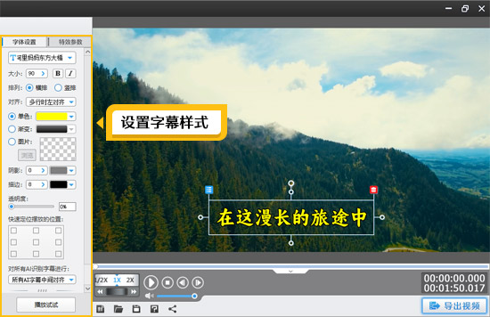 对于片名、片尾以及注解等其他字幕来说,它们虽然没有声音,但也是信息的载体,是视频风格的体现。点击爱剪辑界面顶部 “字幕特效”功能,定位到加字幕的时间点,双击视频预览框,添加字幕。用户可以轻松调整字幕的排版、应用特效等,打造出吸引人眼球的风格化字幕效果。