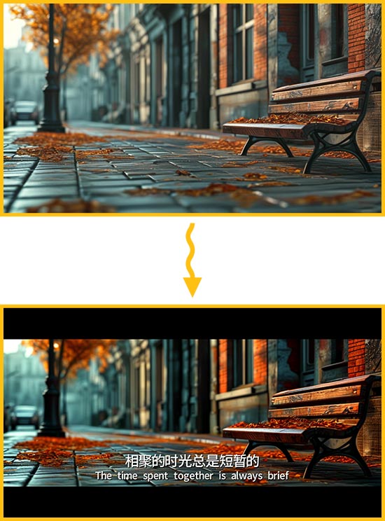 接着,应用“滤镜”栏目的“加黑边框”功能,给视频上下加上黑边,还原电影宽屏效果。