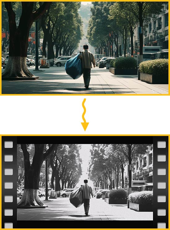 老电影风格:色调暗淡,带有颗粒感和褪色效果,能够营造出一种时光倒流、回忆往昔的氛围。