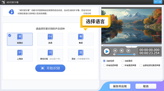 导入视频或音频文件后,右键点击要识别的文件,在弹出的选项框中选择“AI自动加字幕”。很快,与人声同步的字幕就会自动生成。这一过程不仅快速,而且准确性高,大大提高了字幕制作的效率。爱剪辑支持多种语言,包括普通话、粤语、英语、上海话以及几十种方言,如果音视频中包含多种语言对话,还可以选择混合模式进行识别。