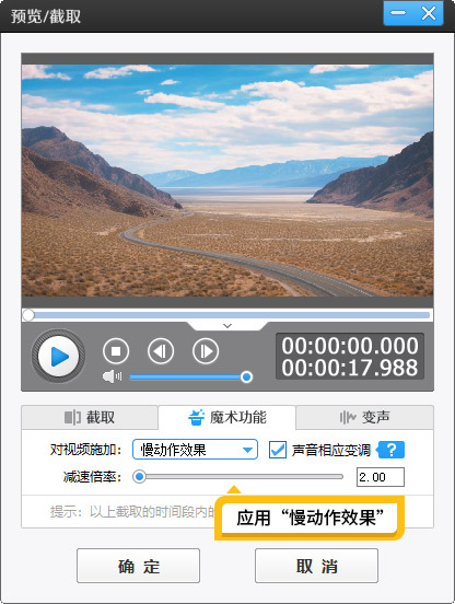 操作方法:首先,打开爱剪辑并导入你想要处理的视频。接着,右键点击视频片段,在弹出的菜单中选择“魔术功能(变速/定格)”。在下拉框中,选择“慢动作效果”,并调整减速倍率的参数,以达到你想要的慢动作效果。