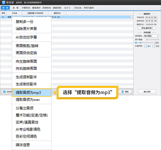 要将视频声音制作成铃声,首先需要从视频中提取音频。这里我们以:爱剪辑,这款软件为例,介绍如何操作。
