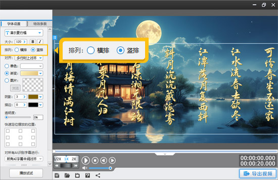 竖排字幕在古诗朗诵视频中也具有独特的应用价值,能够还原古诗的传统排版方式,增强文化氛围。以下是具体操作步骤: