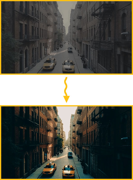瞬间完成色彩还原,视频从灰片变为真实的彩色画面。