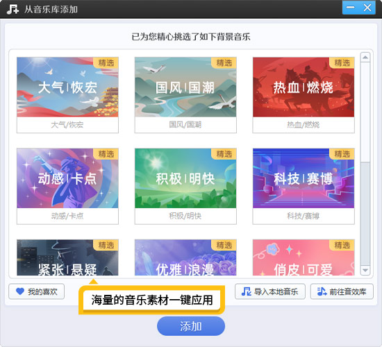 制作优质视频,氛围感音乐至关重要。爱剪辑内置了丰富的音乐素材库,完美解决了传统剪辑软件中选曲难、音乐千篇一律的问题。进入音乐素材库,你会看到分类明确的主题,无论是欢快的庆典主题、浪漫的爱情主题,还是紧张刺激的冒险主题,都能让你快速找到合适的音乐。而且这些音乐音质高,氛围感强,更令人惊喜的是,软件还支持用AI自动截取音频高潮部分,极大地提升了你添加音乐的效率。例如,在制作旅行vlog时,选择一段轻快的背景音乐,搭配AI自动截取的高潮部分,能让视频瞬间充满活力,带领观众一同感受旅途中的美好。