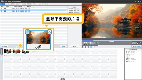 若视频中间存在某一段不需要的内容,也能轻松搞定。点击进度条上的向下箭头,打开创新式时间轴。接着,移动滑块到不需要部分的起始时间点,点击超级剪刀对视频进行分割。然后,继续移动滑块至不需要部分的结束时间点,再次点击超级剪刀。此时,那一段不想要的片段就被单独分割出来了。最后,点击该片段右上角的“x”按钮,即可将其删除,视频中不需要的中间部分就这样被完美去除。