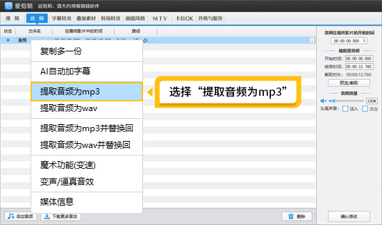 图3:提取音频为mp3
