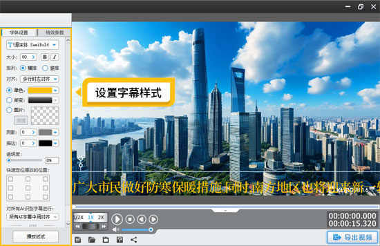 完成字幕添加后,需要对字幕进行进一步优化。首先,将字幕移动到视频底部合适的位置,接着调整字体、颜色和大小,让字幕与视频整体风格相匹配。在“特效参数”列表中,设置“出现时的特效时长”,该参数直接决定字幕滚动的速度。时长设置越长,字幕滚动速度越慢;时长越短,滚动速度越快。创作者可根据实际需求灵活调整,以达到最佳视觉效果。