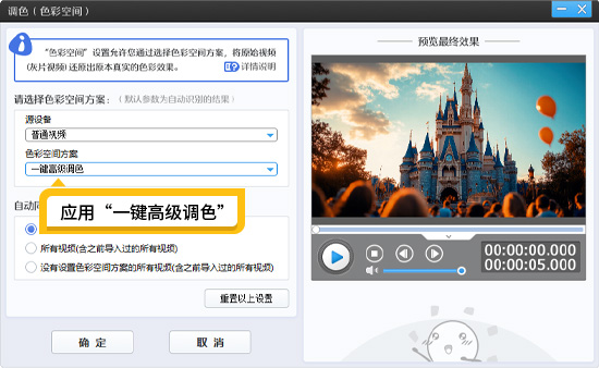 图2:应用一键高级调色功能